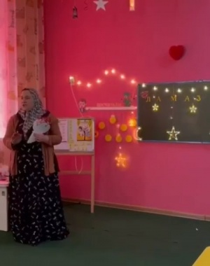 21.03.2023«Детский сад 3 «Машар» с.п.Ассиновское» педагог по ДНВ Борчашвили Р.Х. провела открытое занятие на тему: «Обязанности мусульман». Цель: Развитие представлений о значении нравственных норм и ценностей для достойной жизни личности, семьи, общества через знакомство с религиозными обязанностями мусульман.